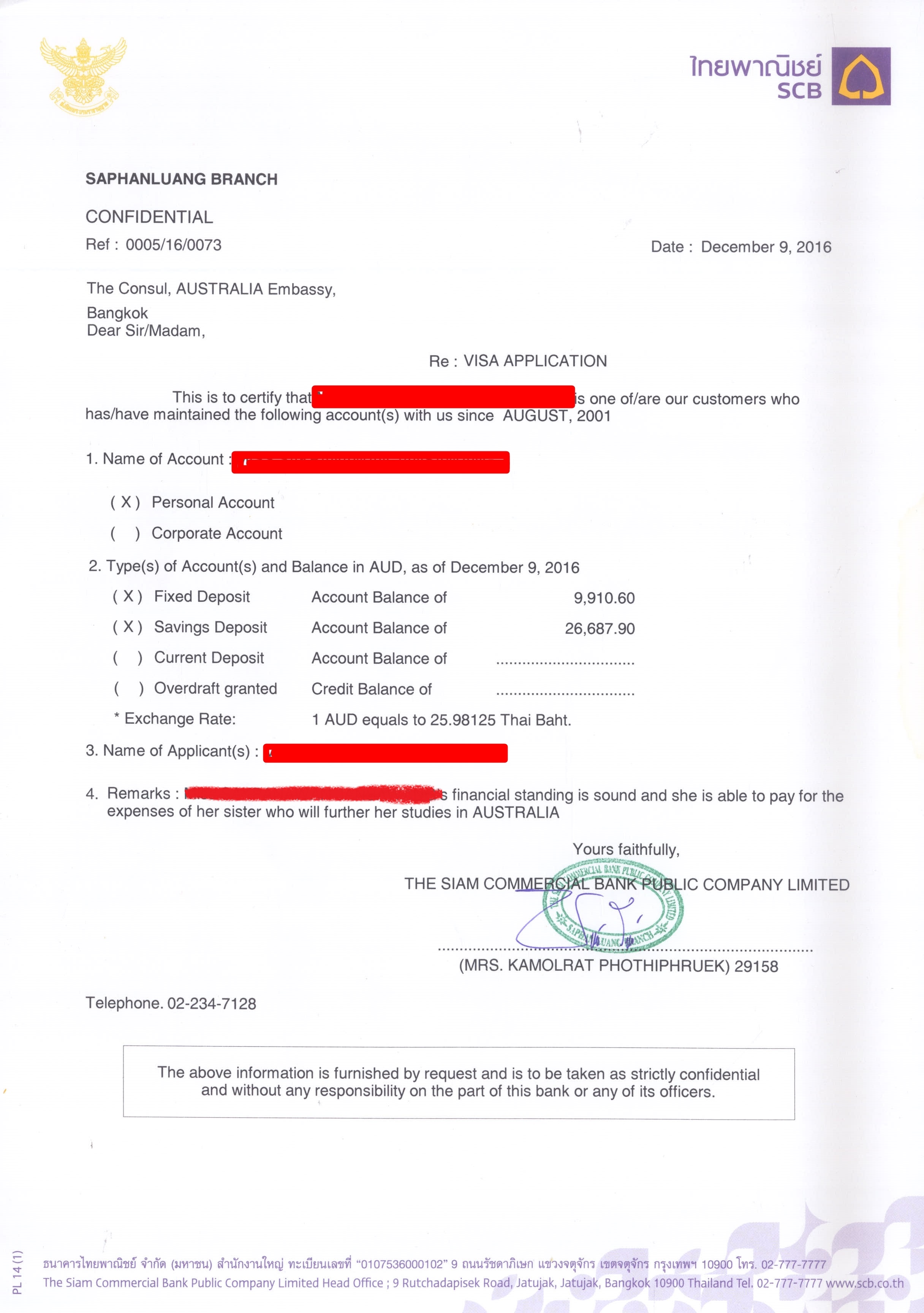 Bank guarantee คือหนังสือ แสดงฐานะทางการเงินของเรา ที่จะบอกว่าในบัญชีเรานั้นมีเหลืออยู่เท่าไร เป็นหนังสือค้ำประกันโดยธนาคาร แต่ว่า "จะไม่ได้โชว์รายการเดินบัญชี" ว่ามีเงินเข้า เงินออก เมื่อไร ยังไง เท่าไร แต่เอกสารตัวนี้ จะต้องโชว์เงินที่เหลือ และแปลงค่าเป็นเงินในสกุลนั้นๆ แล้วแต่ประเทศที่เราจะไป เช่น เรามีอยู่ 7 แสน หากแปลงมาเป็นค่าเงิน ออสเตรเลีย ดอลลาร์ แล้วเราจะมีอยู่เท่าไร แล้วนำเอกสารตัวนี้มาใช้ยื่นขอวีซ่า
